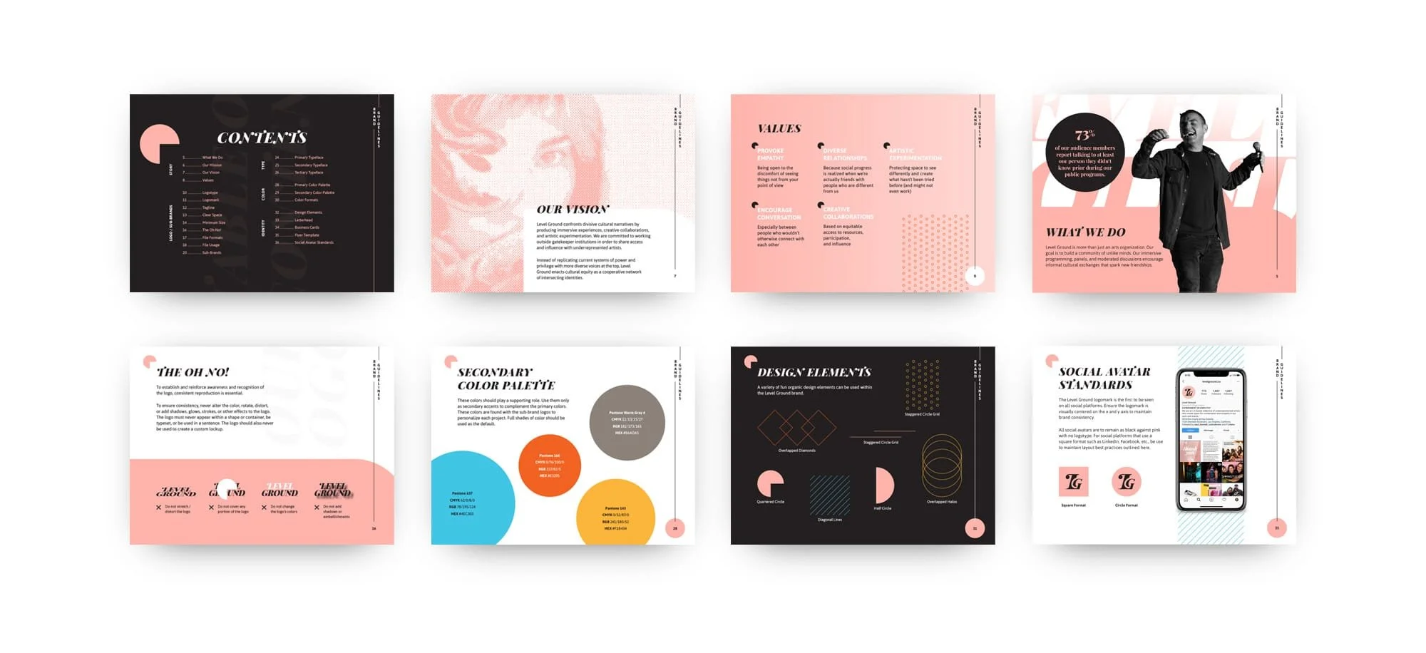 I also designed a system for Level Ground’s various sub-brands and introduced a color palette that offers each brand a sense of individuality.