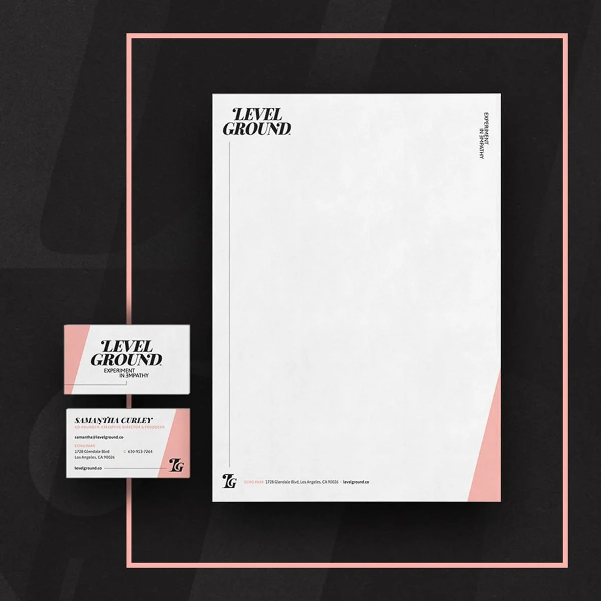 The old logo created several challenges with print reproduction, and the client was looking for a more minimalistic, yet sophisticated design. The new logotype and mark was customized to echo the strong foundational sensibility of the original logo, but with delicate serifs to convey the beauty and diversity of Level Ground artists and creators.