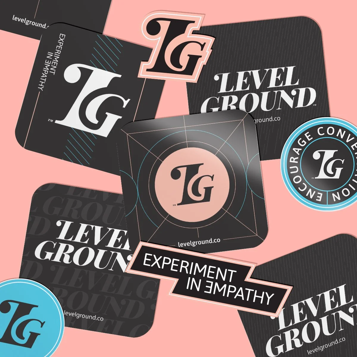 After designing the logo and stationery, I was able to direct my team of designers to expand the brand into guidelines and other collateral the Level Ground team needed to promote their refreshed look at events. This included everything from pop-up banners to stickers.