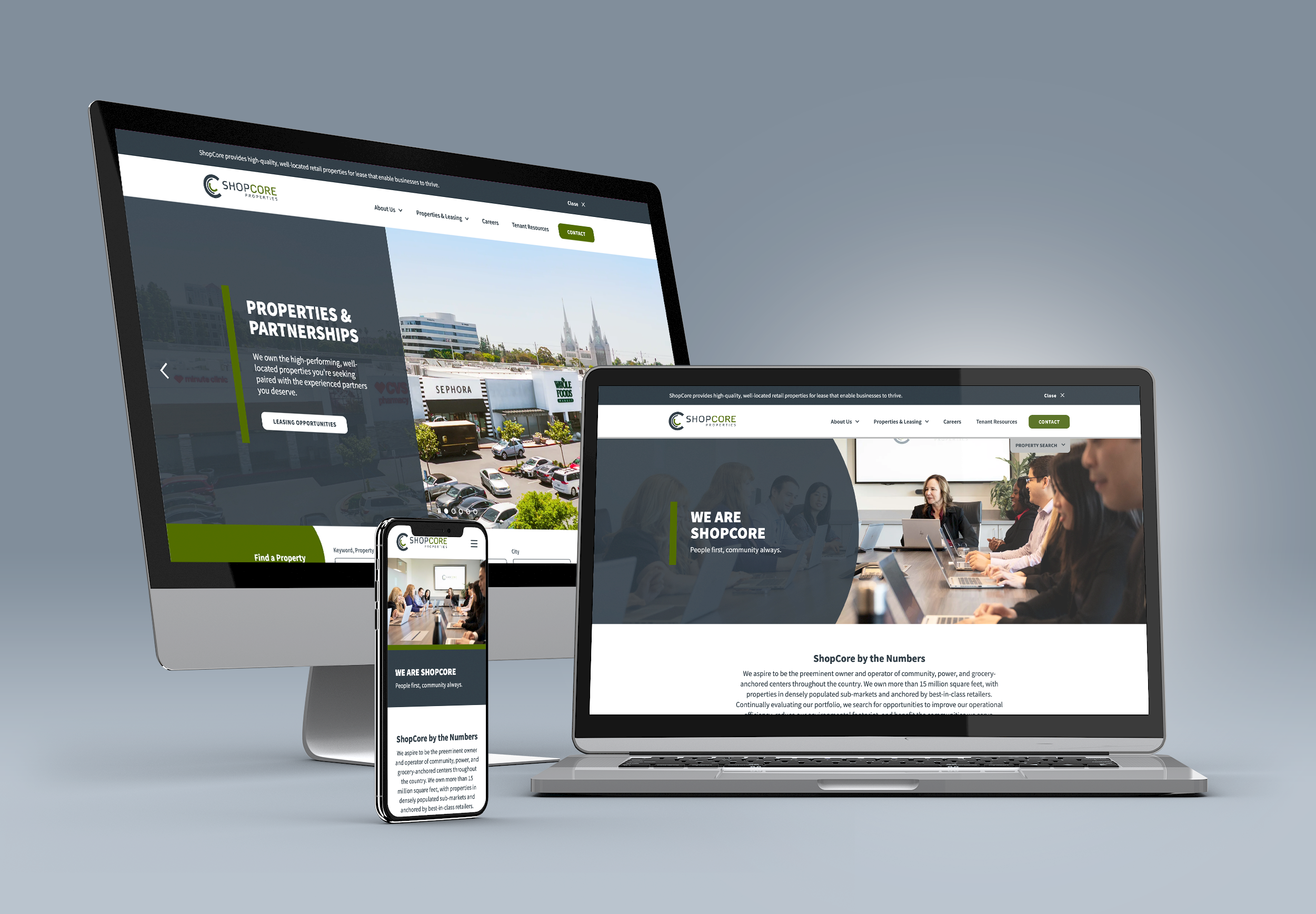 With over 15 million square feet of properties owned, ShopCore Properties sought a website that would reflect the caliber of their best-in-class retailers. They desired a design that would guide visitors through a journey of their business practices and values, emphasizing community building and growth opportunities. With decades of industry experience, ShopCore aimed to showcase their professionalism, thoroughness, and numerous other competencies through their website.